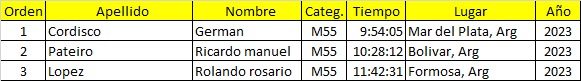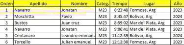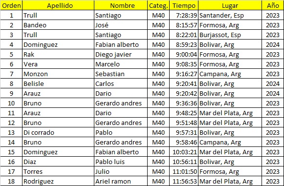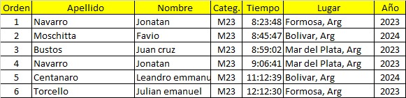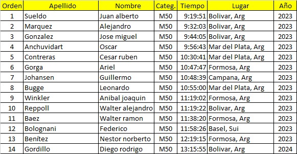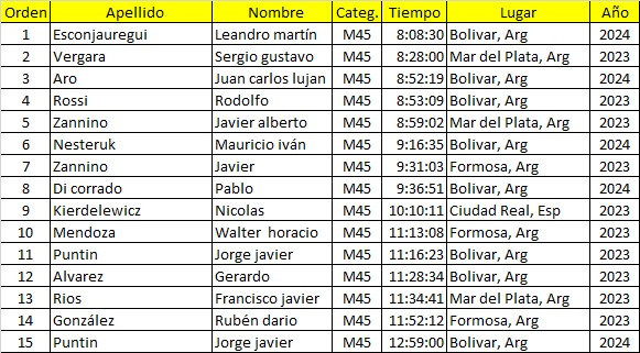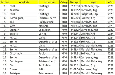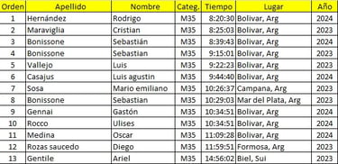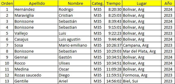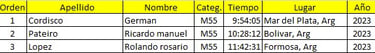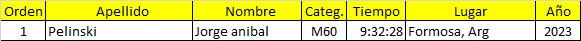 Mejores Marcas del Calendario Argentino de Ultramaratón 2023/2024.