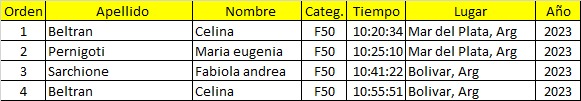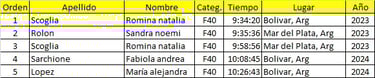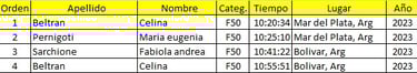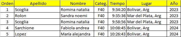 Mejores Marcas del Calendario Argentino de Ultramaratón 2023/2024.