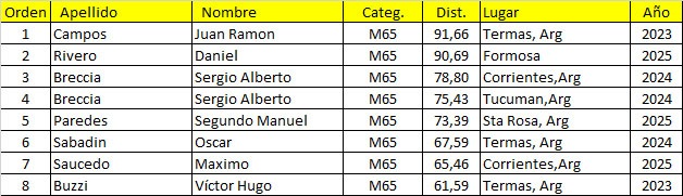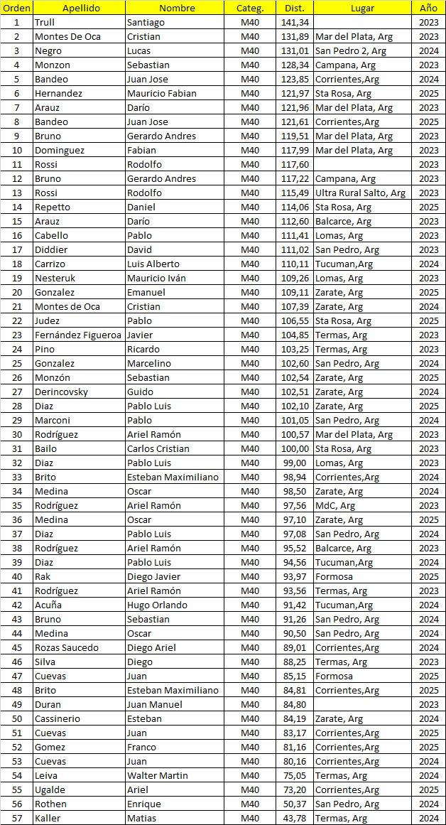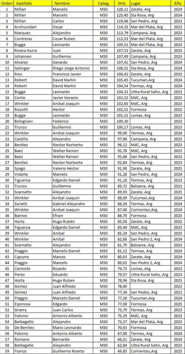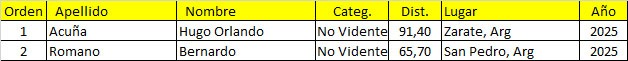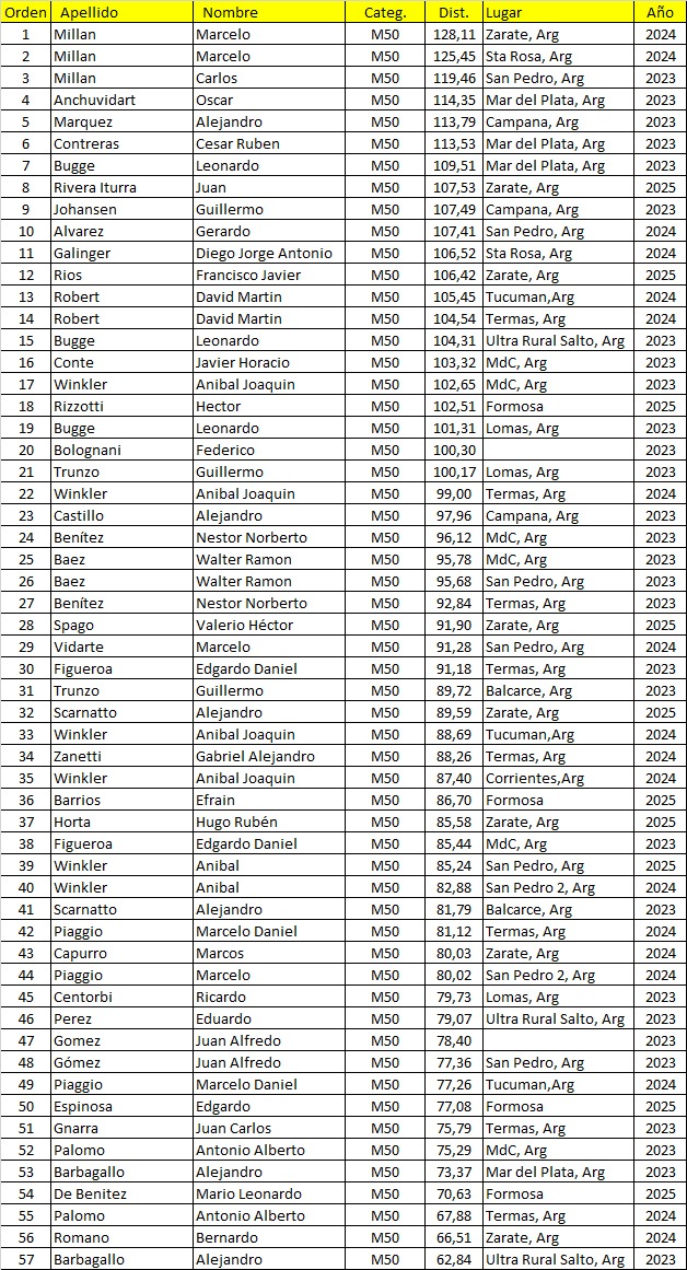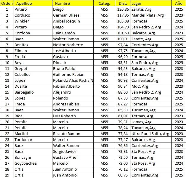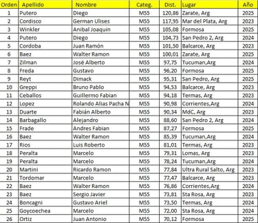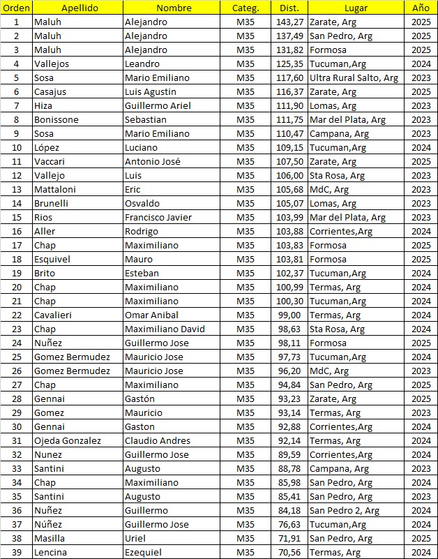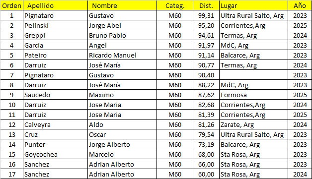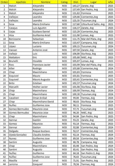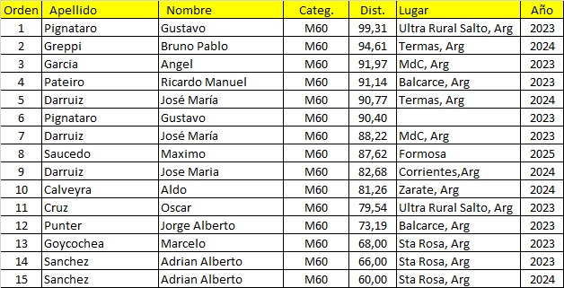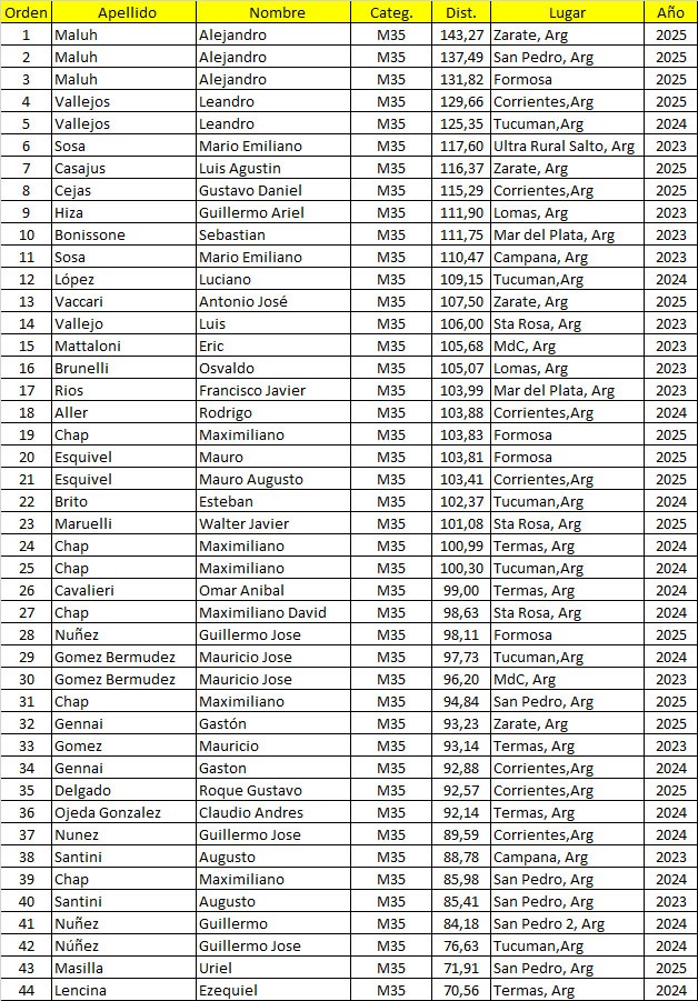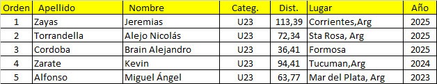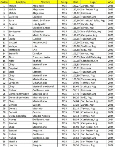 Mejores Marcas del Calendario Argentino de Ultramaratón 2023/2024/2025.