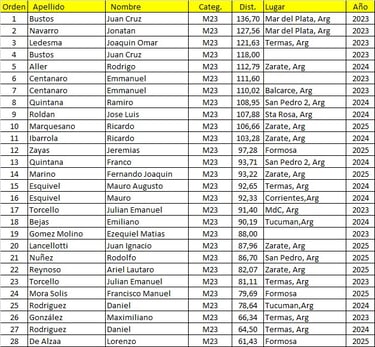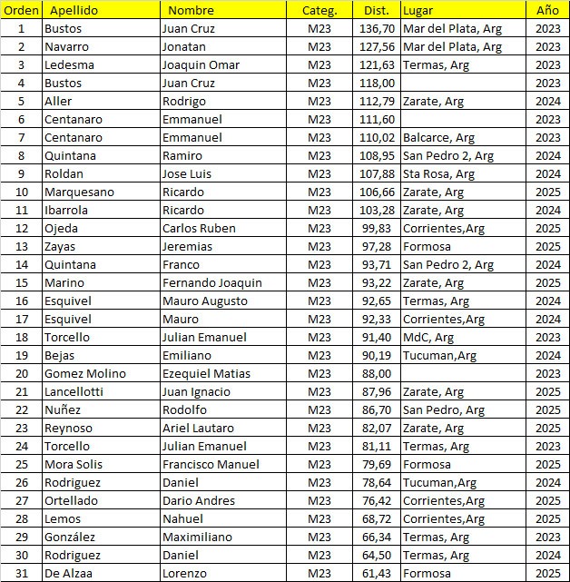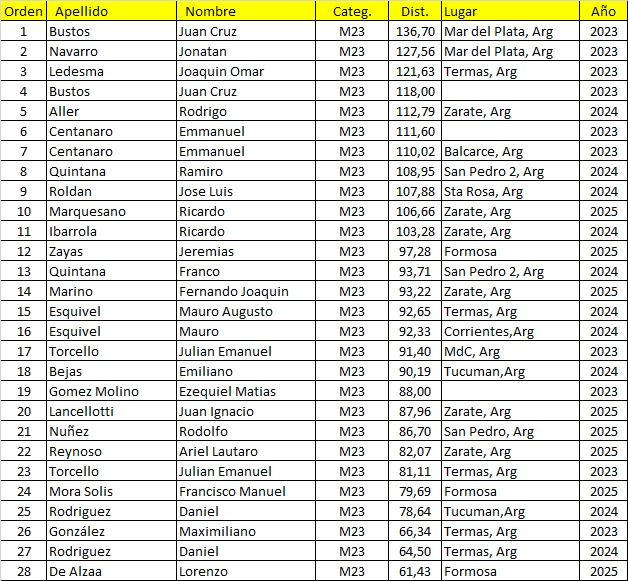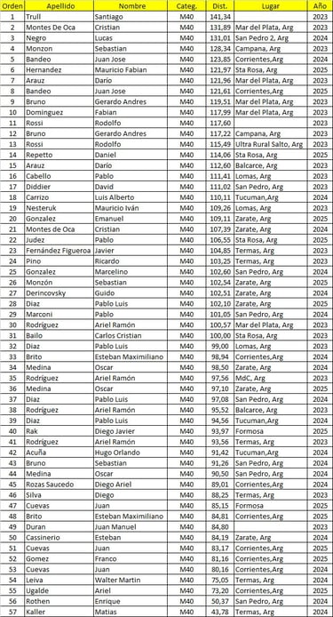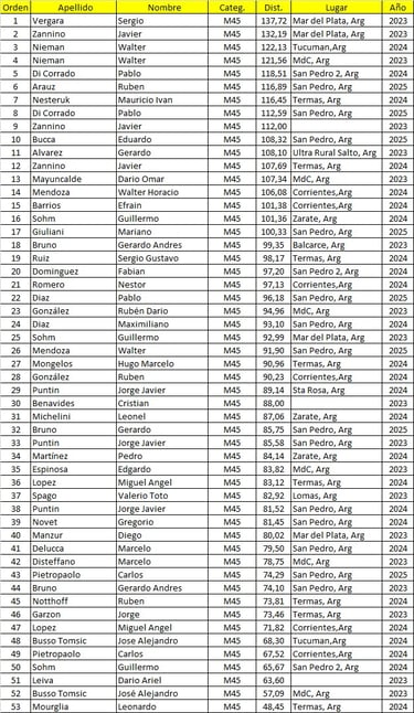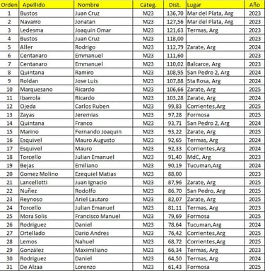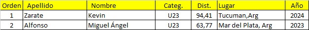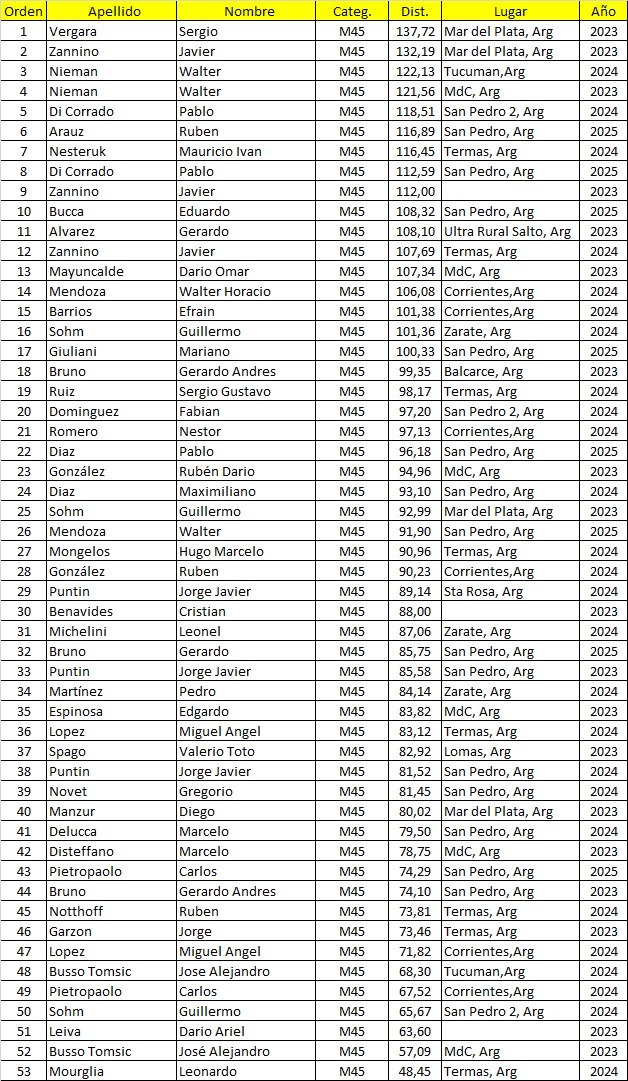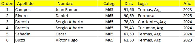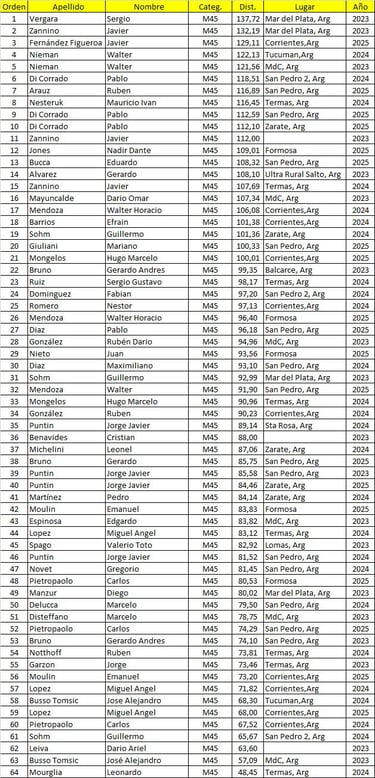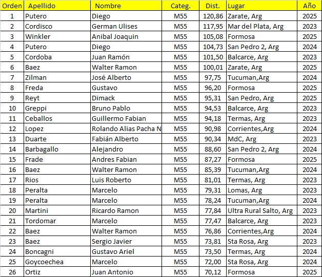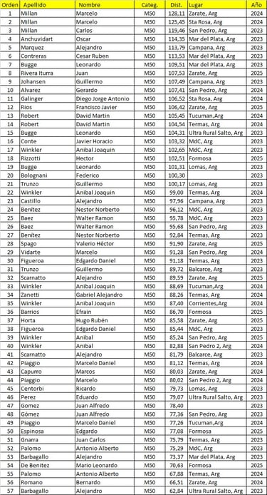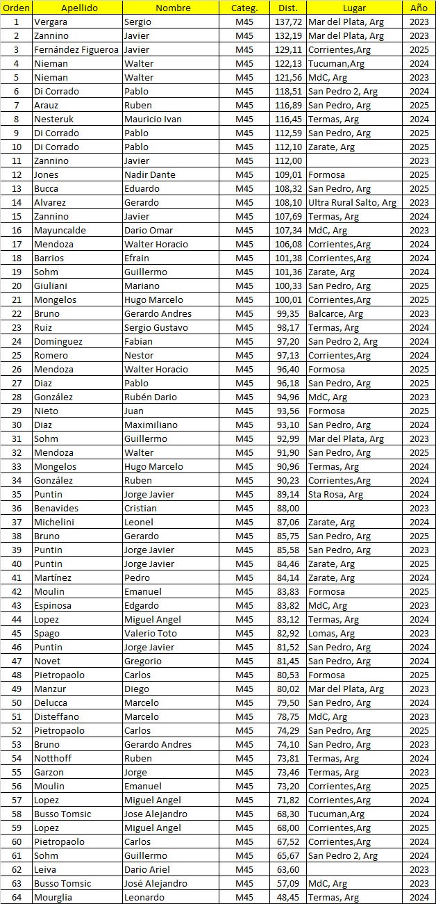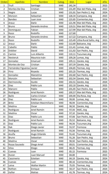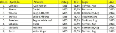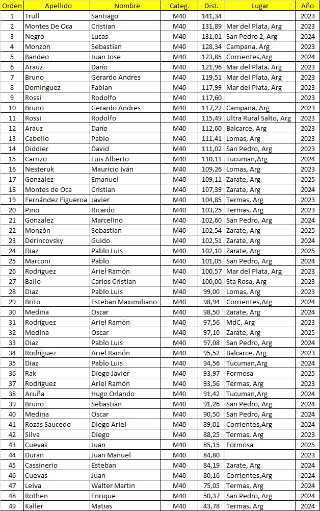Mejores Marcas del Calendario Argentino de Ultramaratón 2023/2024/2025.