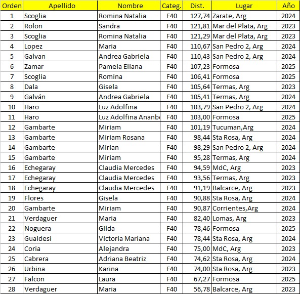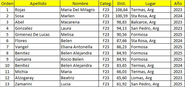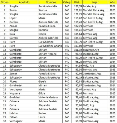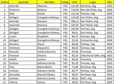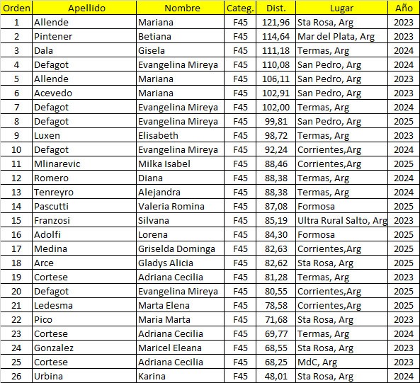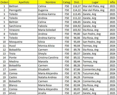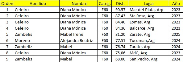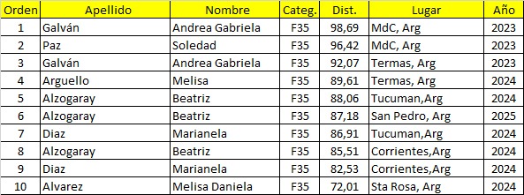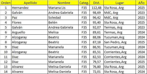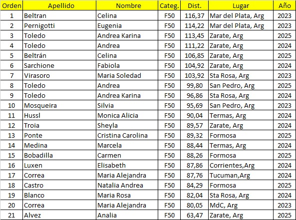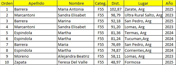 Mejores Marcas del Calendario Argentino de Ultramaratón 2023/2024/2025.