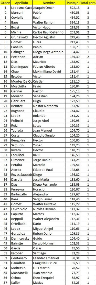 Posiciones del Calendario Argentino de Ultramaratón 2025 a la 6º Fecha