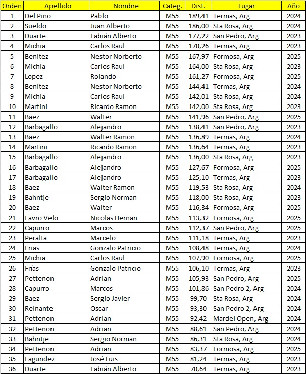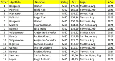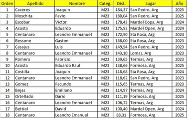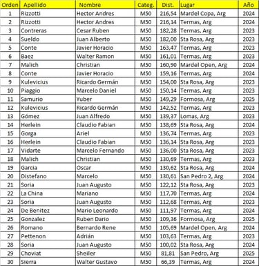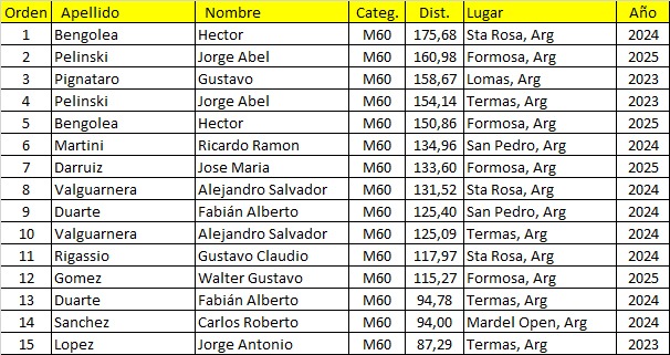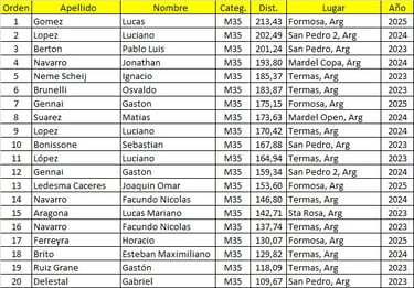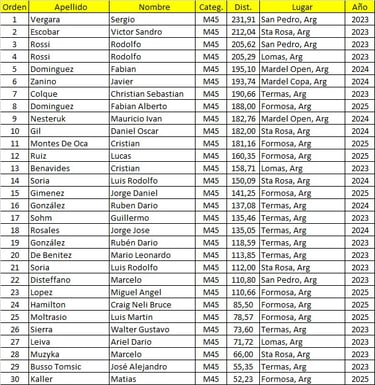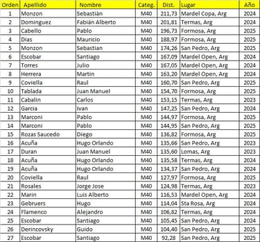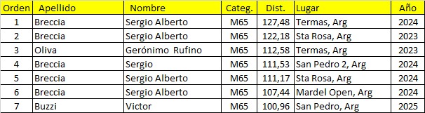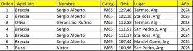 Mejores Marcas del Calendario Argentino de Ultramaratón 2023/2024/2025.