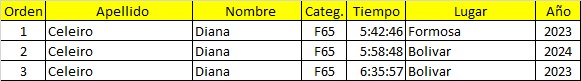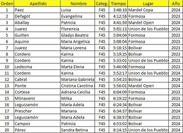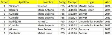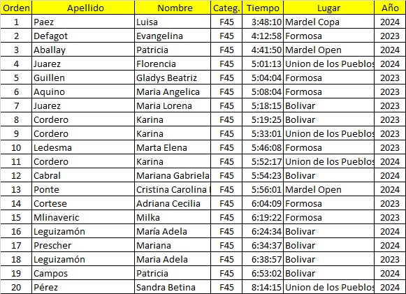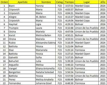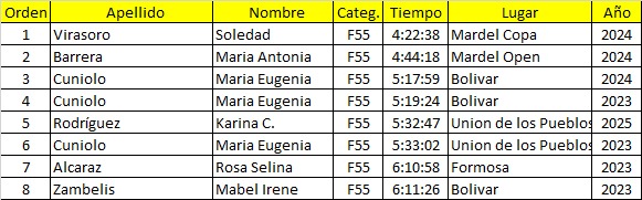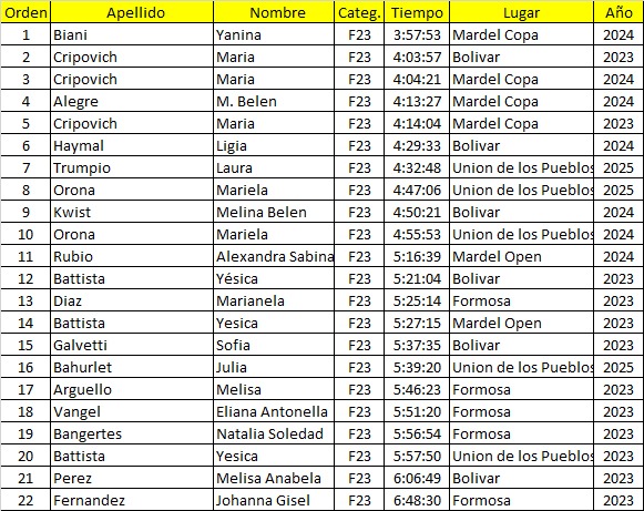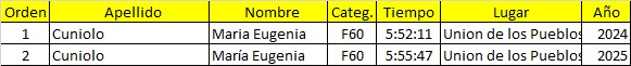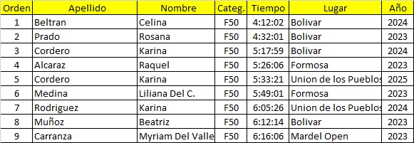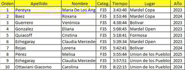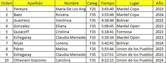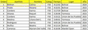 Mejores Marcas del Calendario Argentino de Ultramaratón 2023/2024/2025.