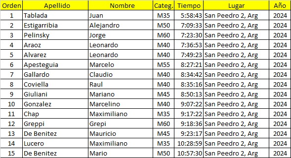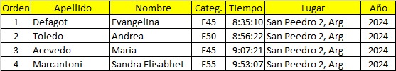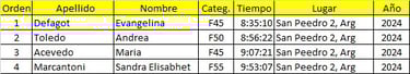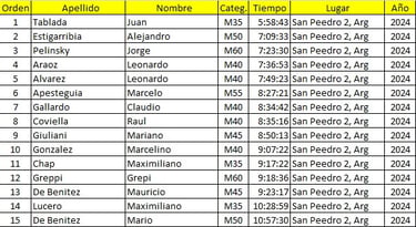Mejores Marcas del Calendario Argentino de Ultramaratón 2023/2024.