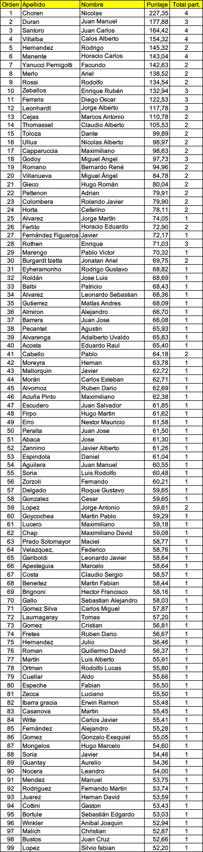 Posiciones finales del Calendario Argentino de Ultramaratón 2025.