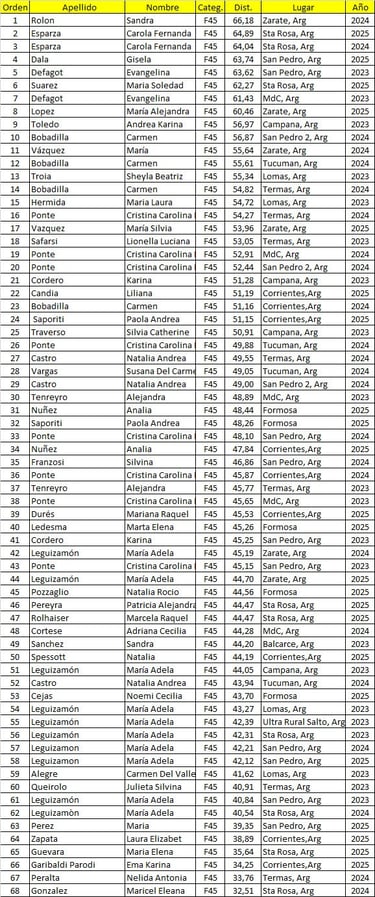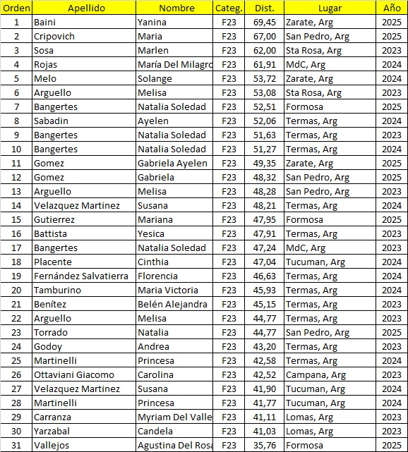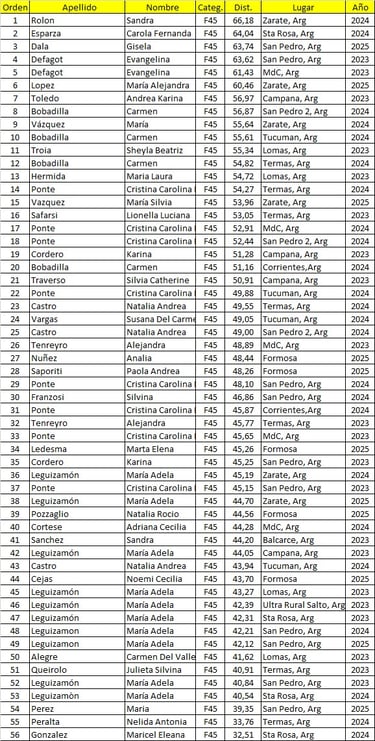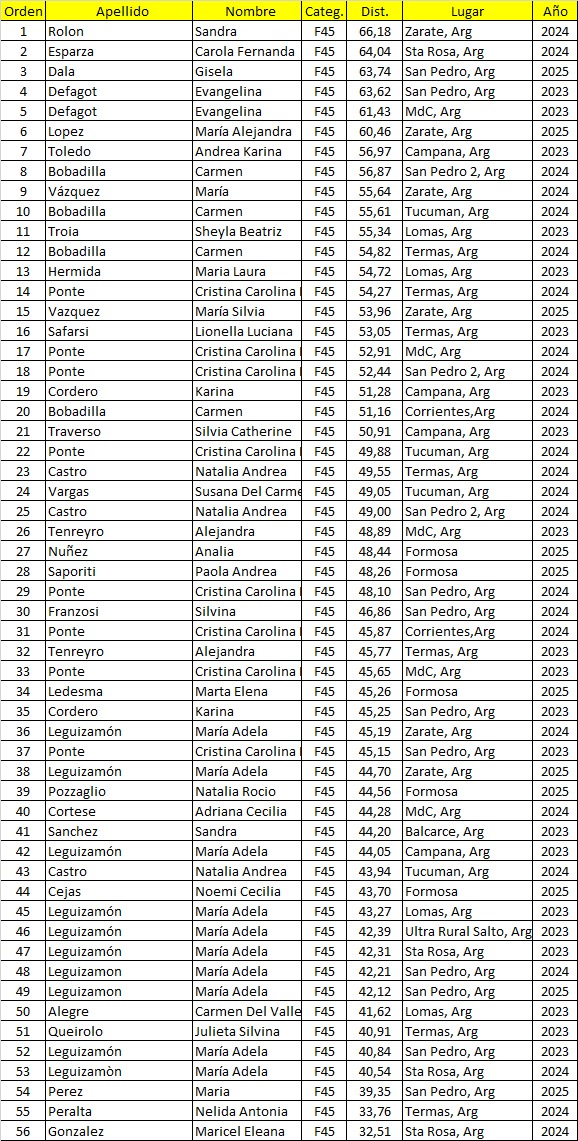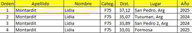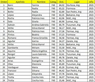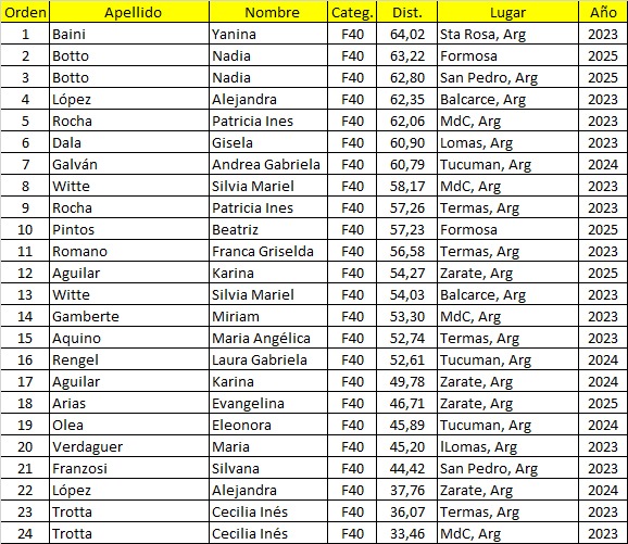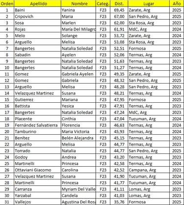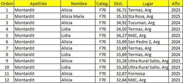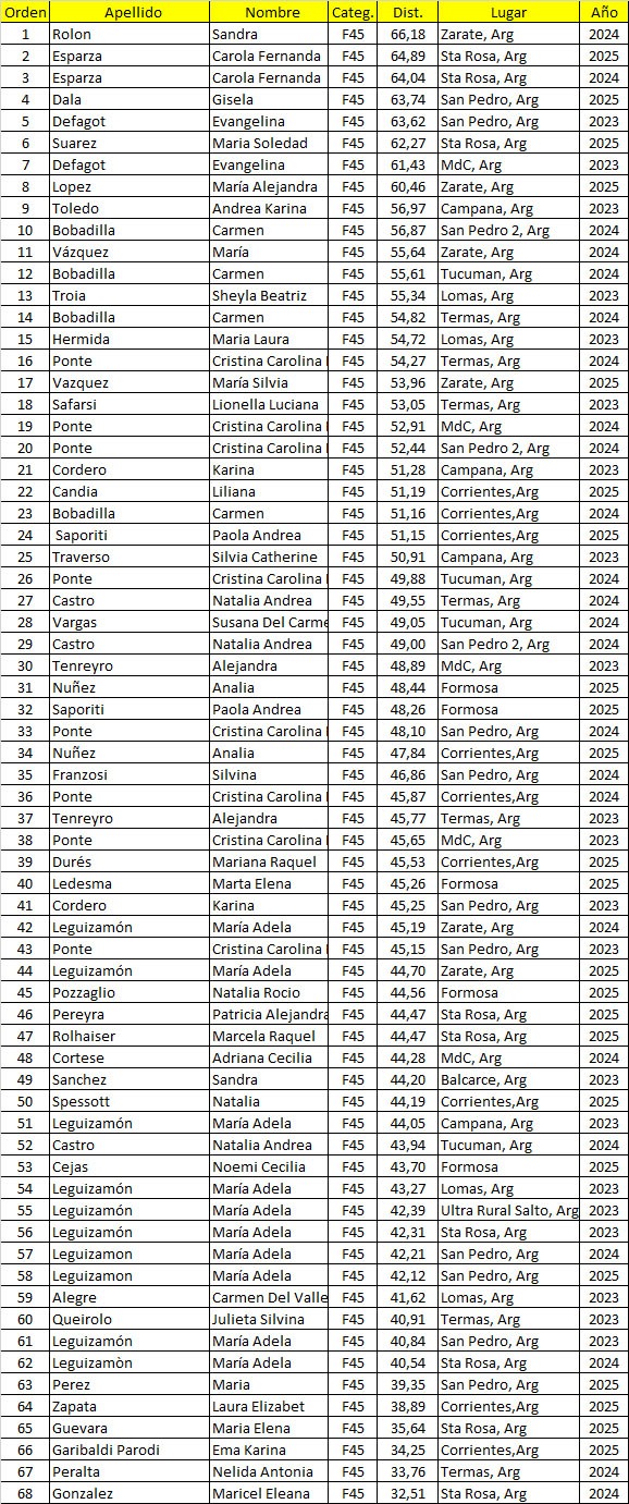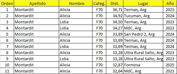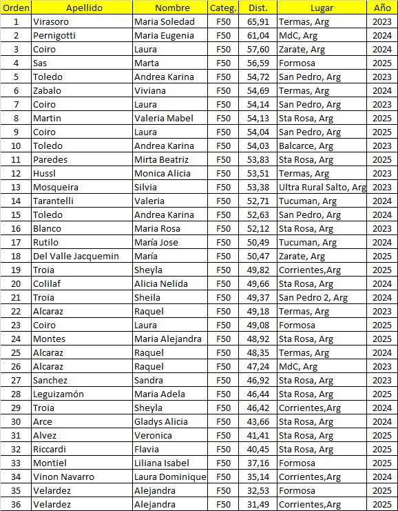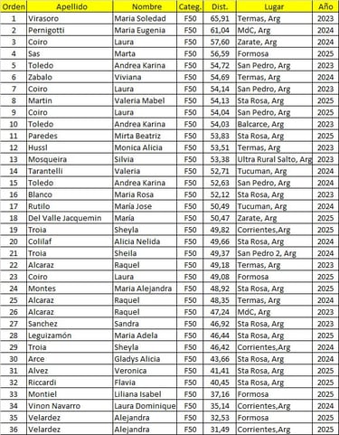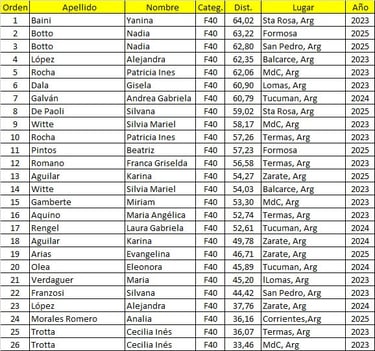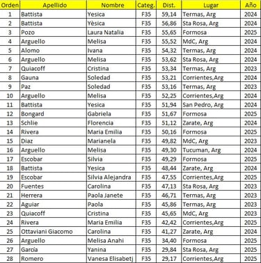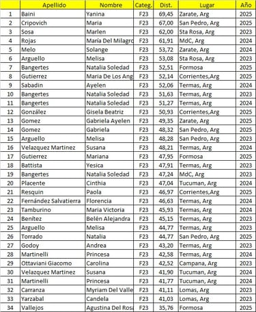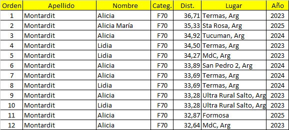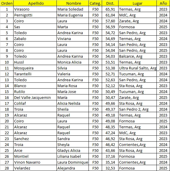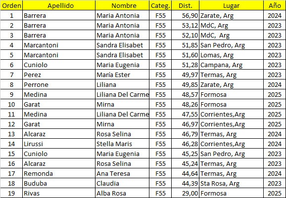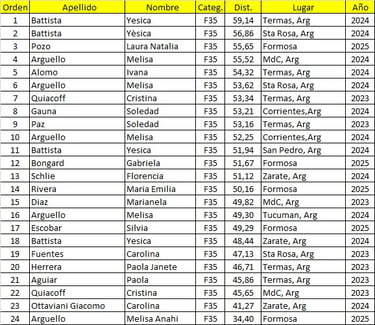 Mejores Marcas del Calendario Argentino de Ultramaratón 2023/2024./2025