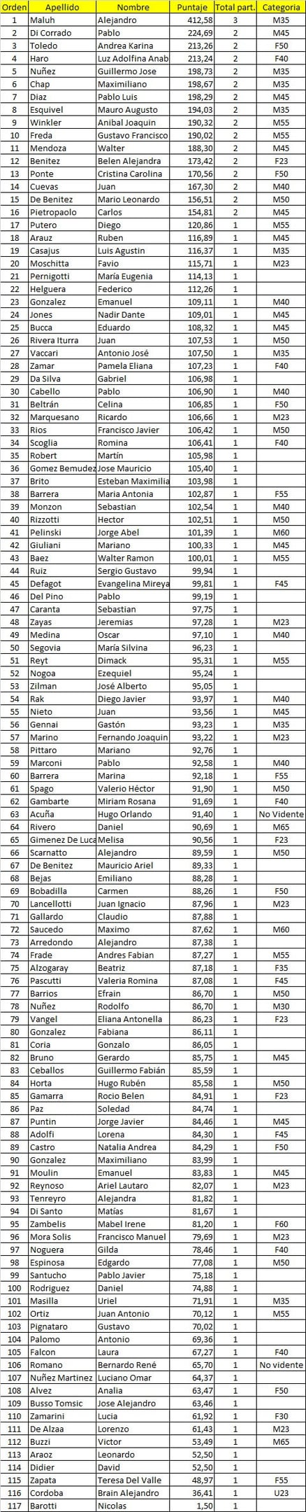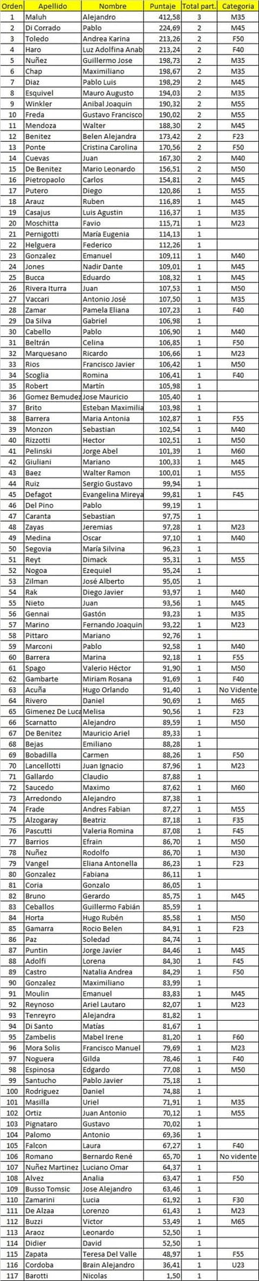 Posiciones del Calendario Argentino de Ultramaratón 2025 a la 6º Fecha