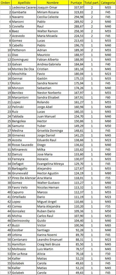 Posiciones del Calendario Argentino de Ultramaratón 2025 a la 6º Fecha