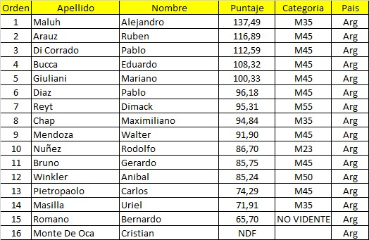 Resultados de las 6, 12, 24hs del Ultramaratón San Pedro, que se llevó a cabo en dicha ciudad el 15 y 16 de Marzo de 2025
