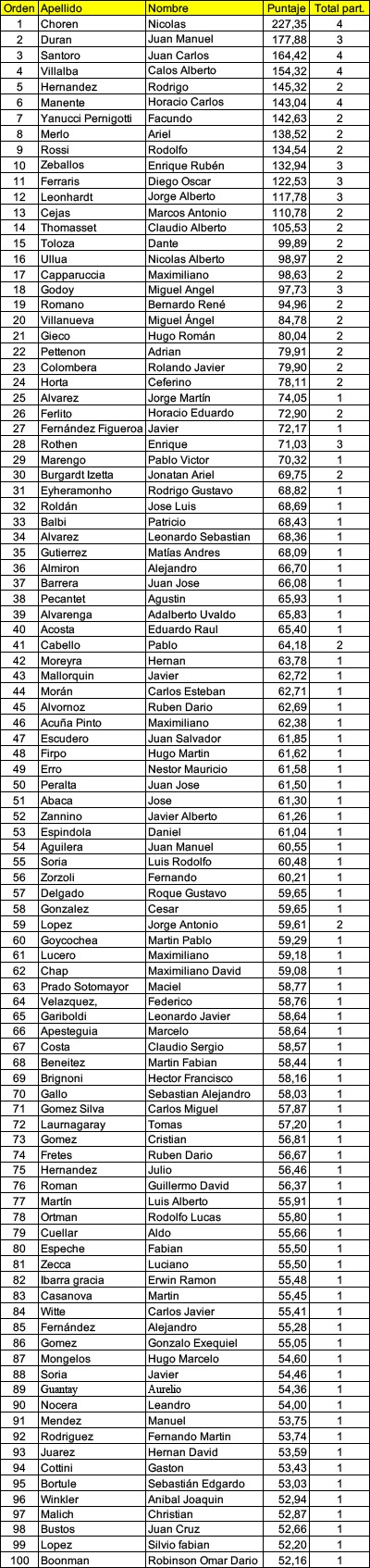 Posiciones del Circuito Argentino de Ultramaratón 2025.